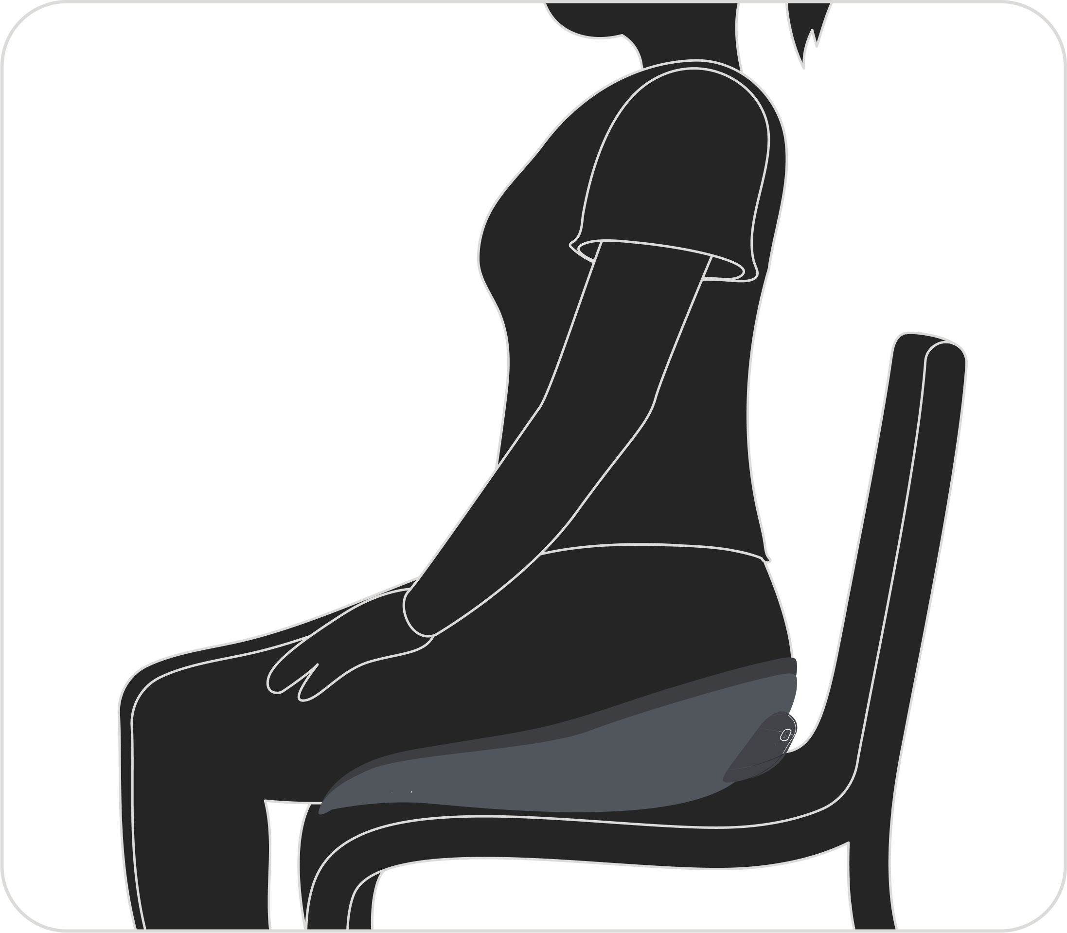 Spüren Sie den Unterschied, sobald Sie Platz nehmen! Die konturierte Sitzfläche hebt das Becken an, formt die Hüften und bietet stabile Unterstützung für eine bessere Haltung und optimale Hüftausrichtung.