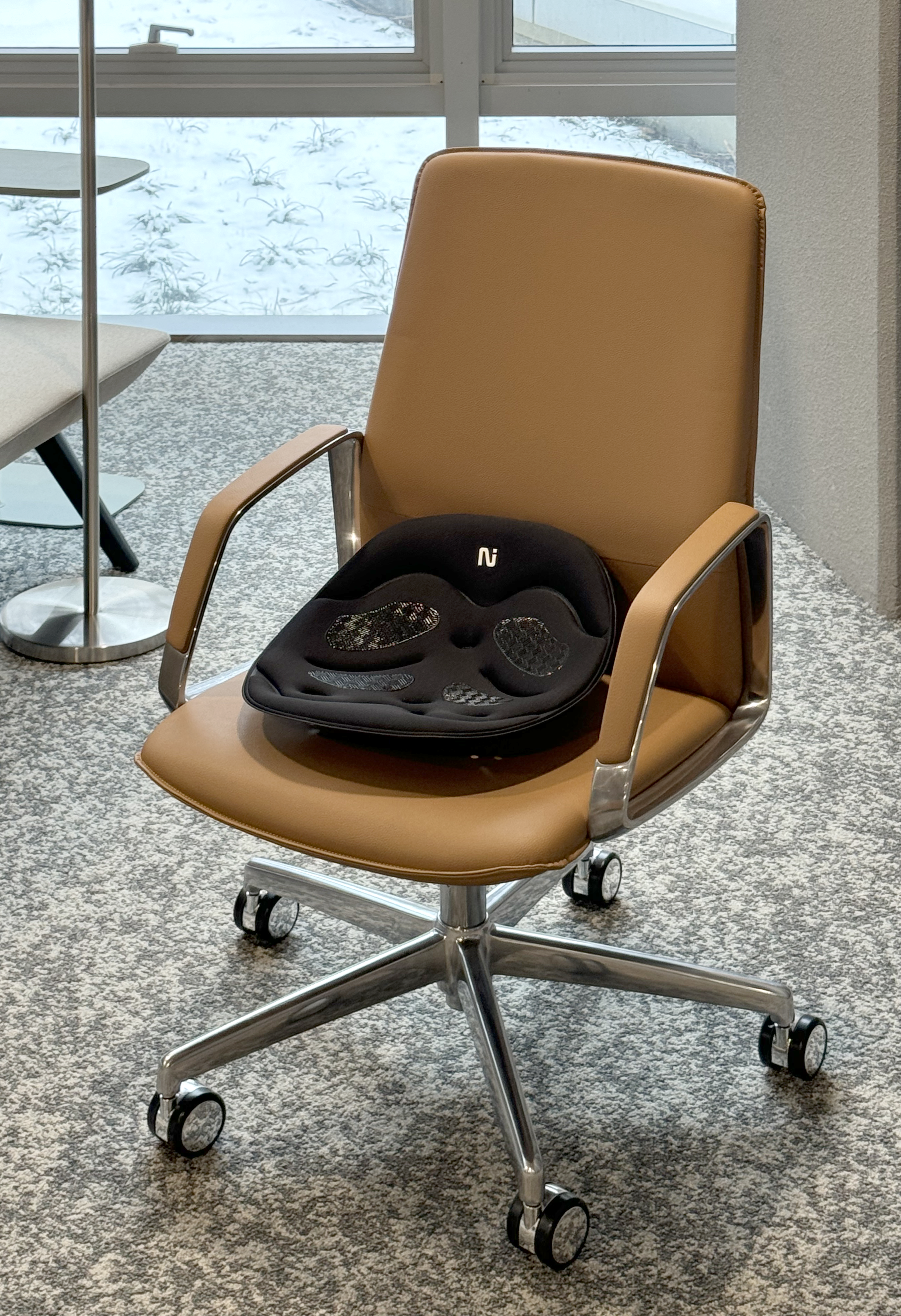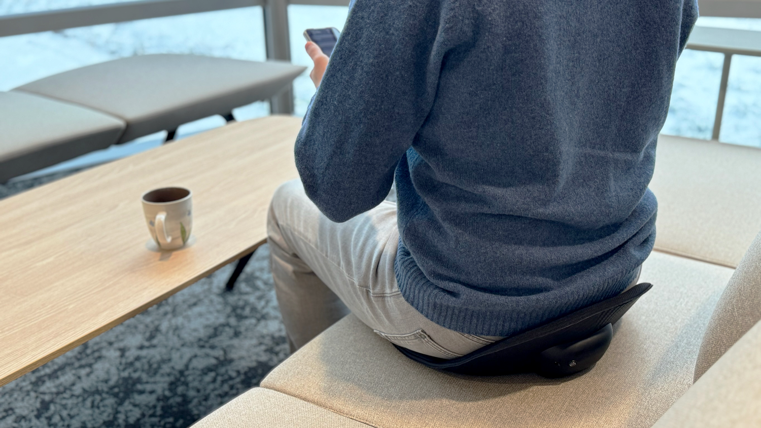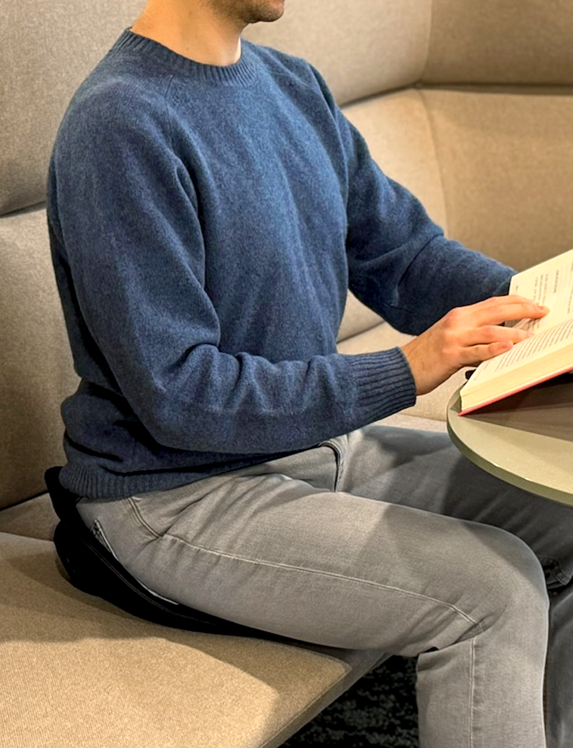 Platzieren Sie NeuraSit® mittig auf Ihrem Stuhl und nicht an der Rückenlehne, um freie Beweglichkeit zu ermöglichen.
