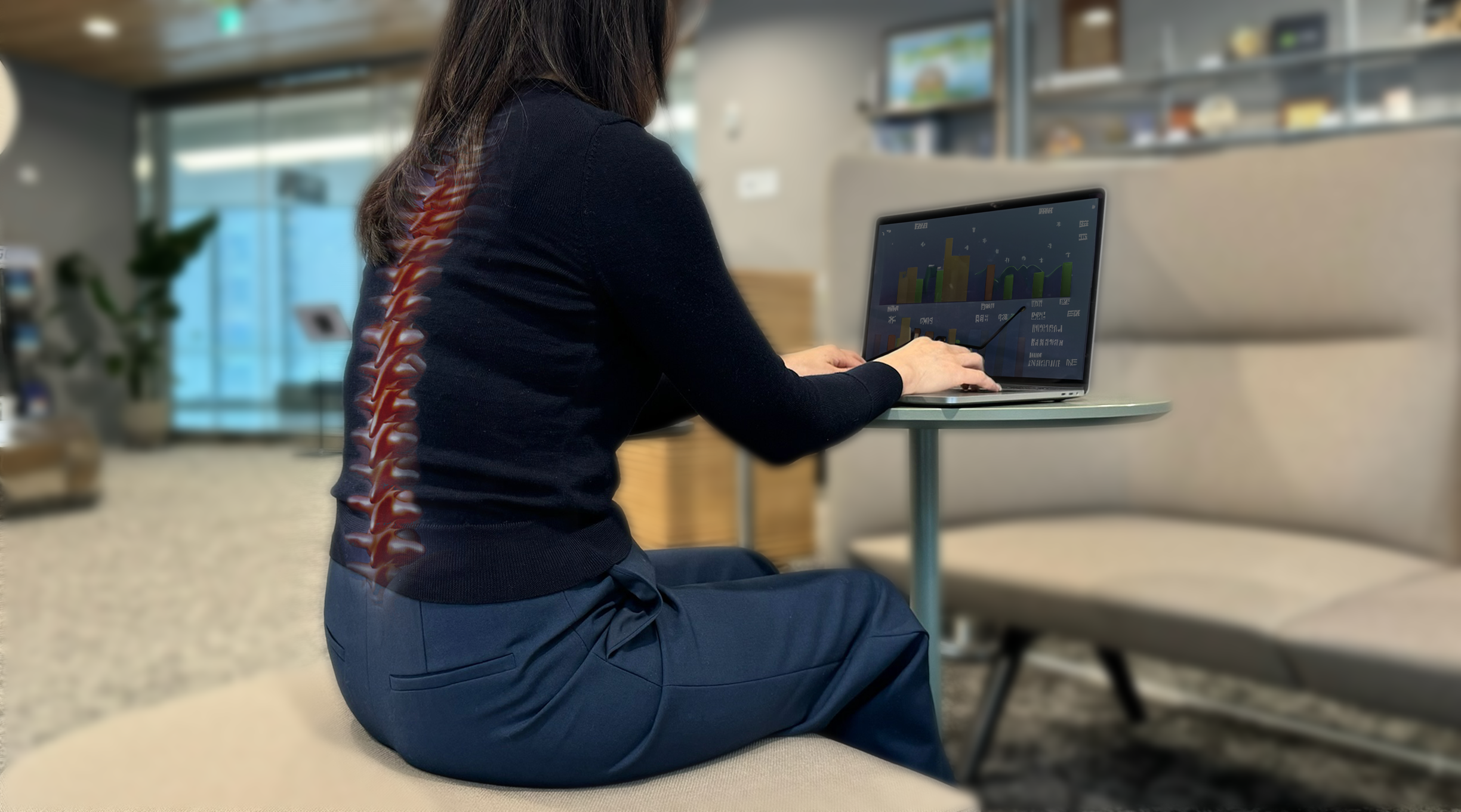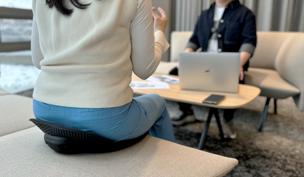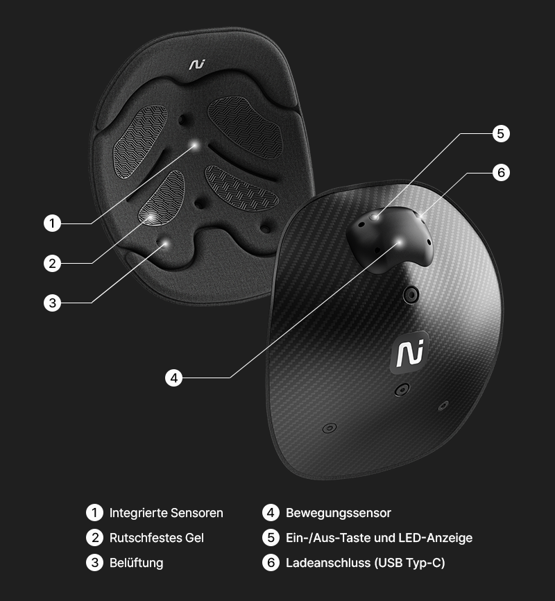 Nutzt Haltungsdaten aus Drucksensoren, um durch Vibrationen Pausen bei längeren Sitzphasen anzuregen.